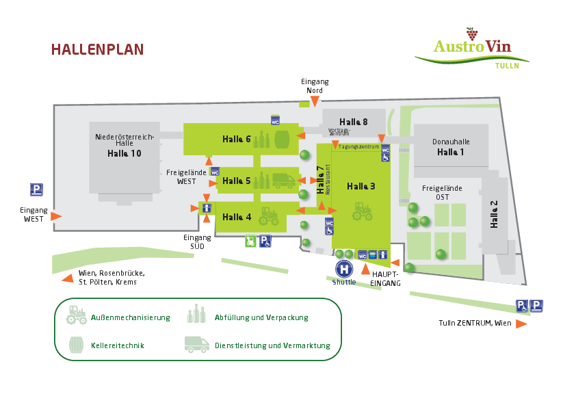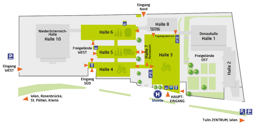 Ein kostenloser Transfer vom Bahnhof Tullnerfeld und vom Hauptbahnhof Tulln bringt Sie zur Messe Tulln und retour. (Abfahrt ca. alle 25-30 Minuten)